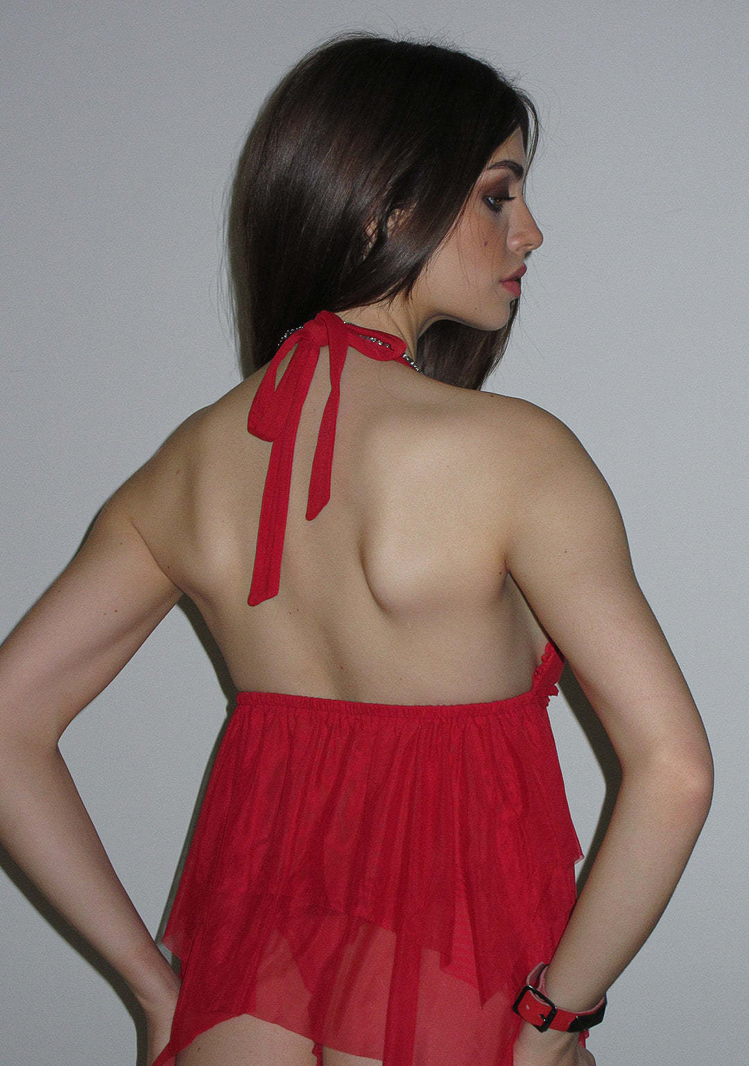LOVEBITE SHEER MESH HALTERNECK CAMI TOP RED