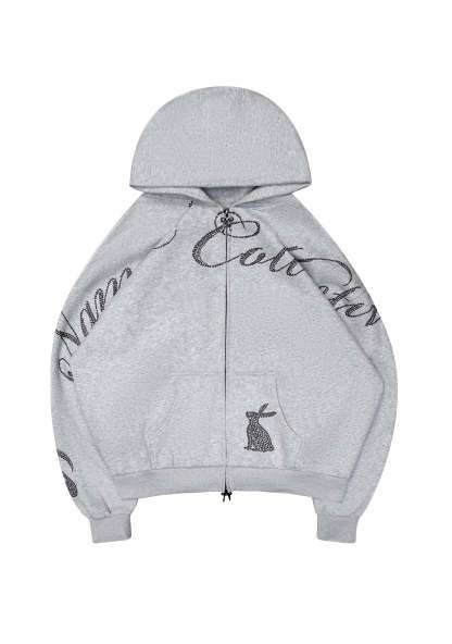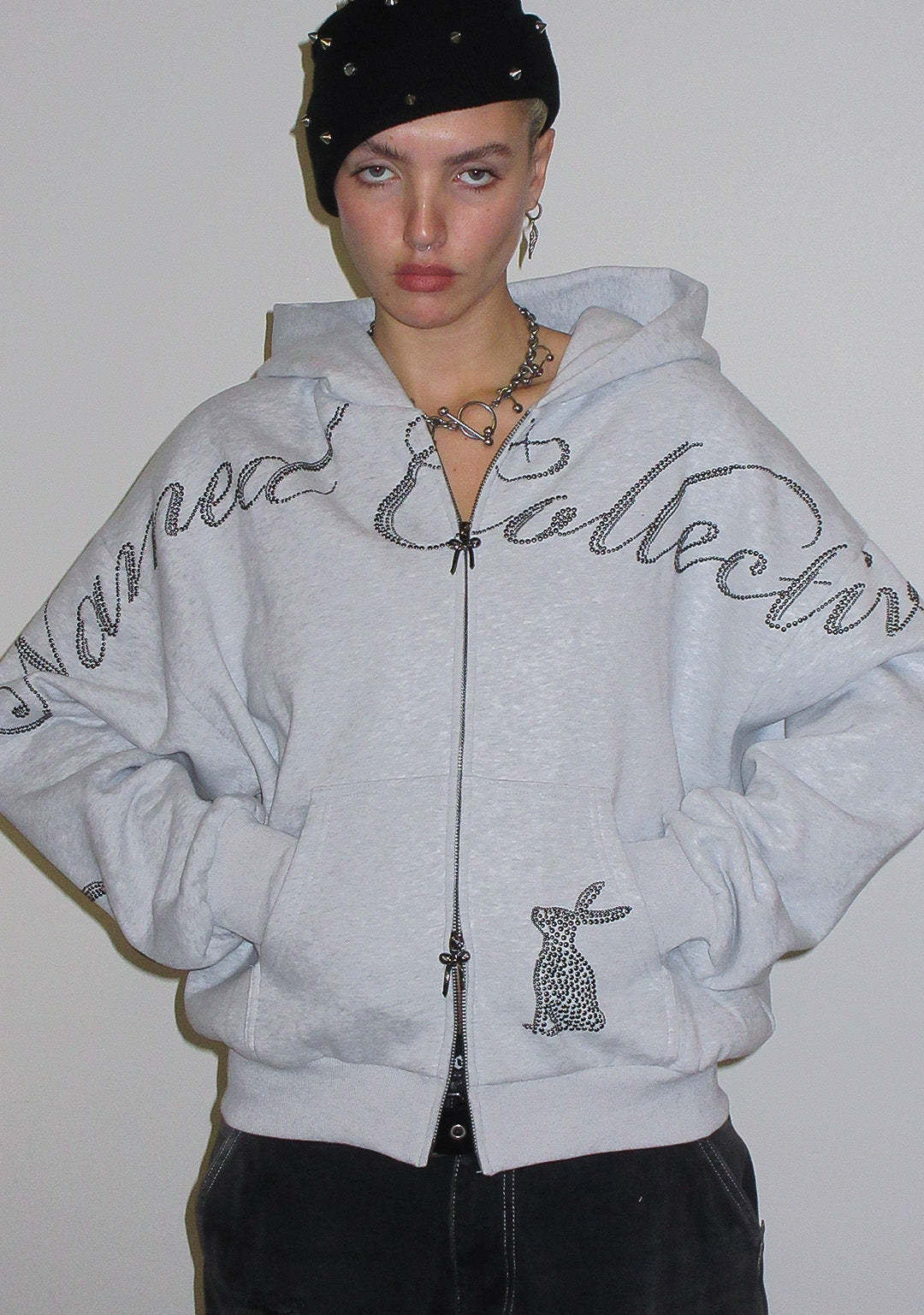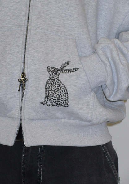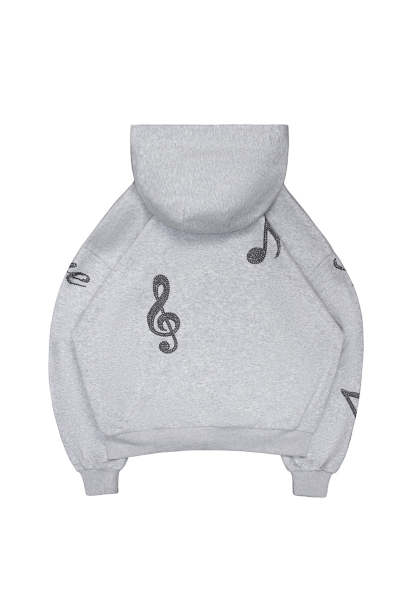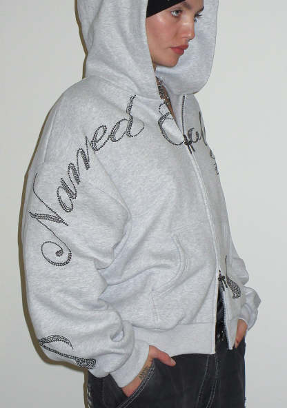 MUSE STUDDED ZIP HOODIE GREY MARL